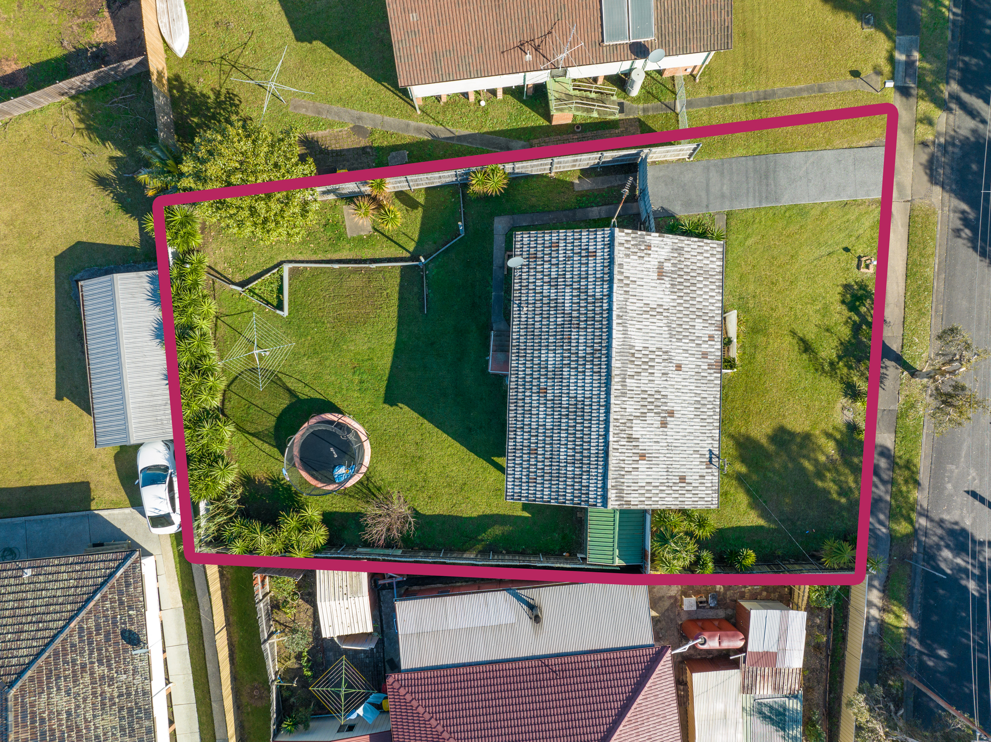 • Large private grassy backyard with neat gardens & garden shed