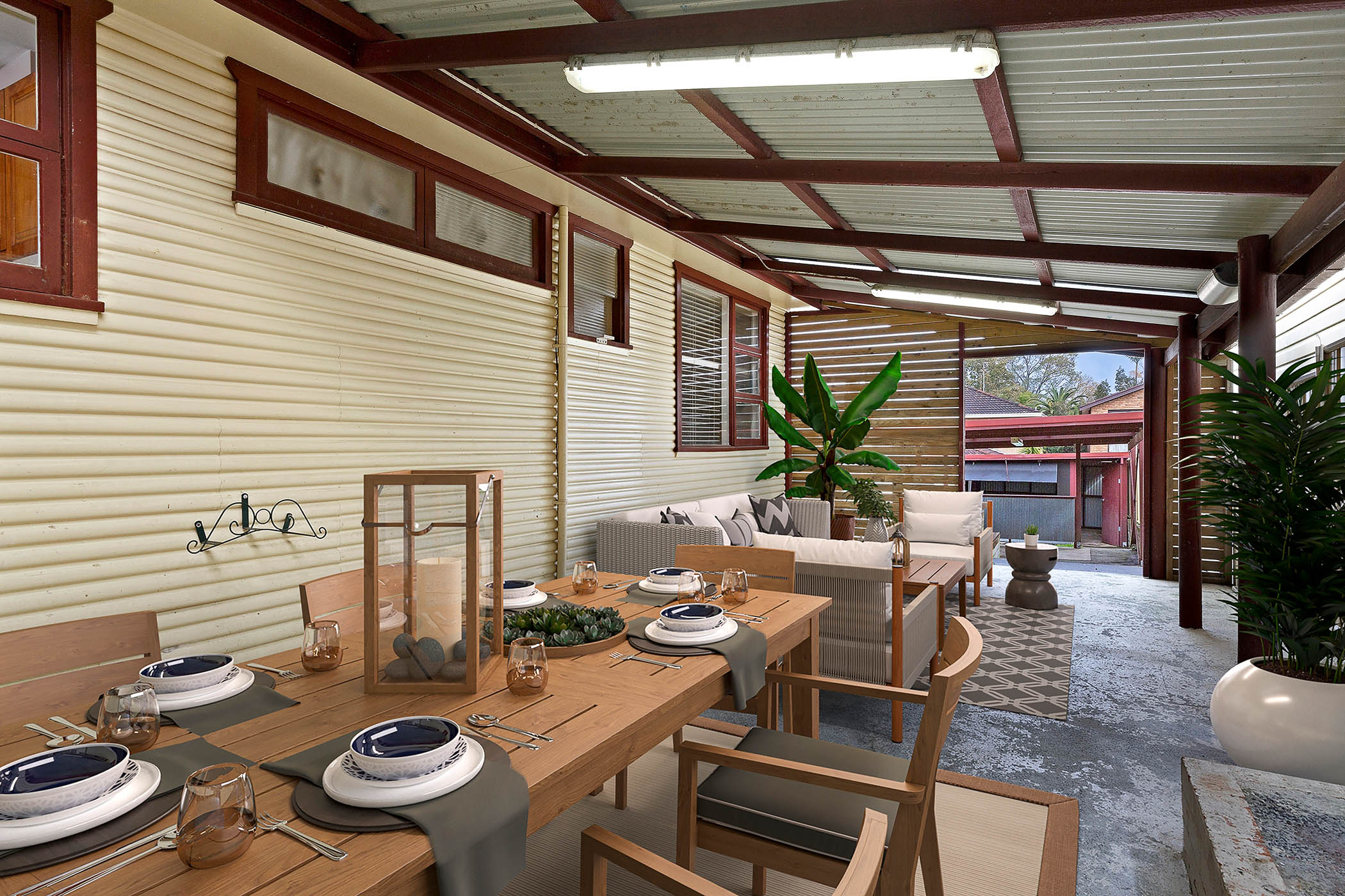 • Multiple covered entertaining areas overlooking a huge grassy backyard