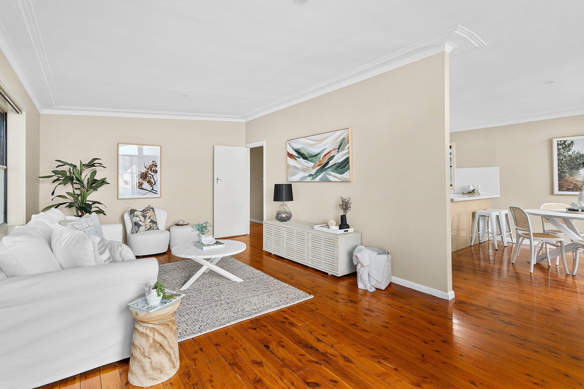 • Spacious air-conditioned open plan living / dining area & timber floors throughout