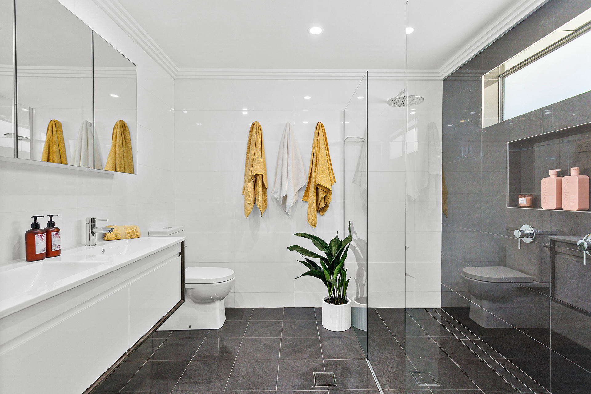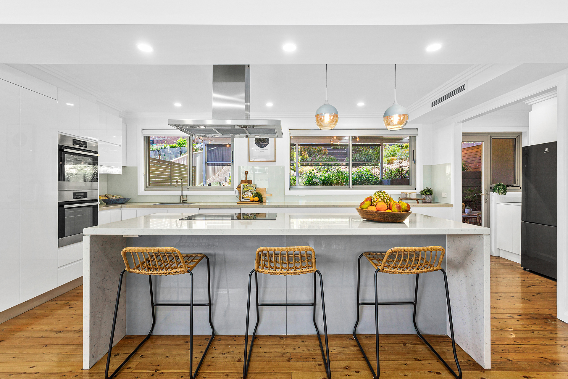 • Double oven, S/S appliances with feature rangehood, integrated dishwasher