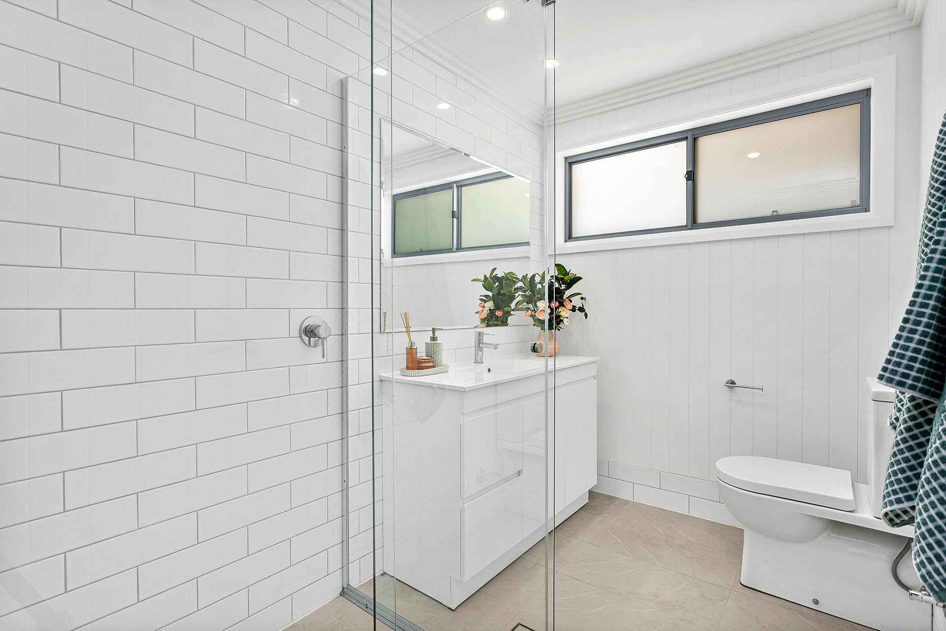 • 3 Stylish bathrooms with shutters, main including bathtub + separate powder room