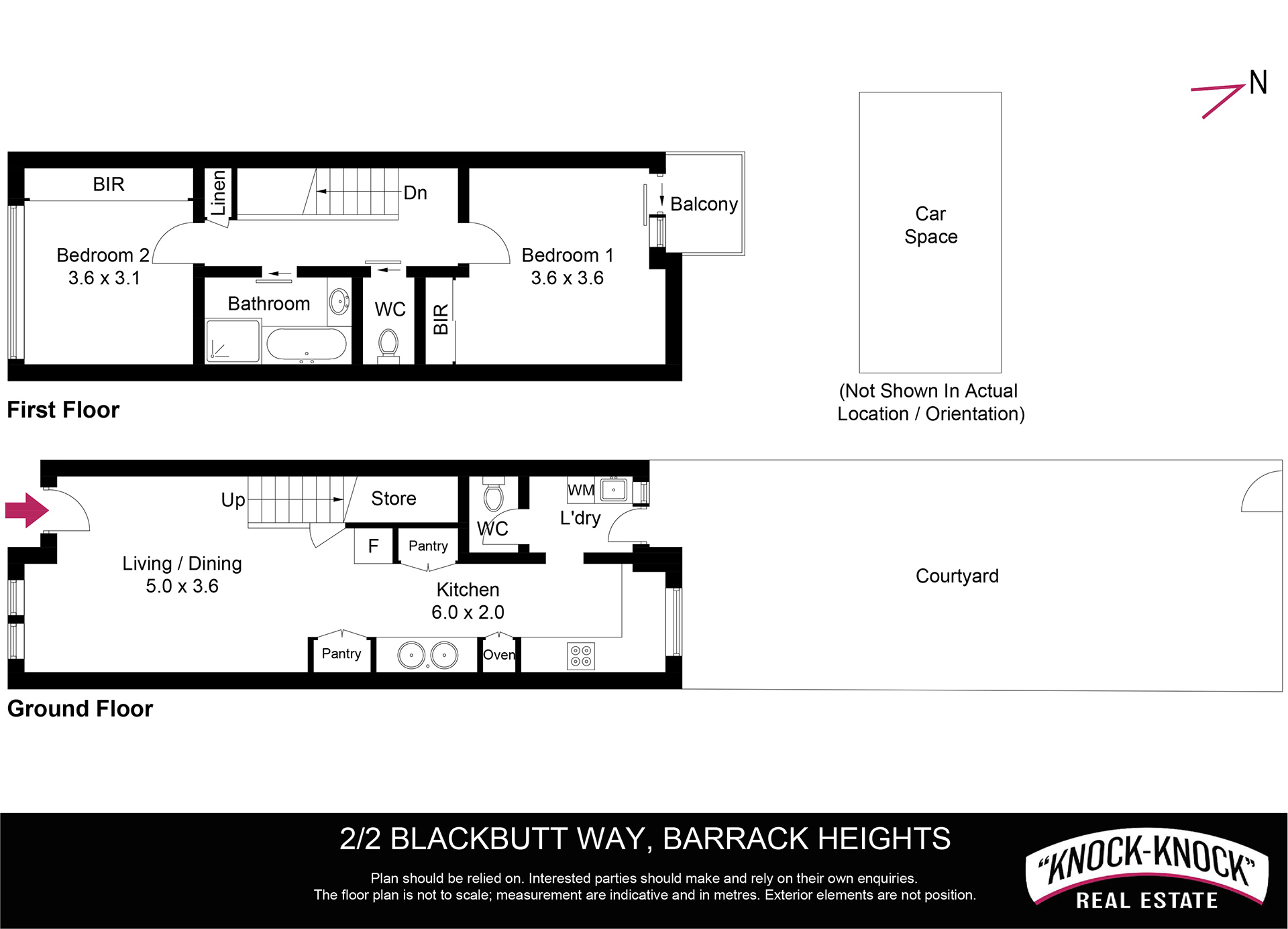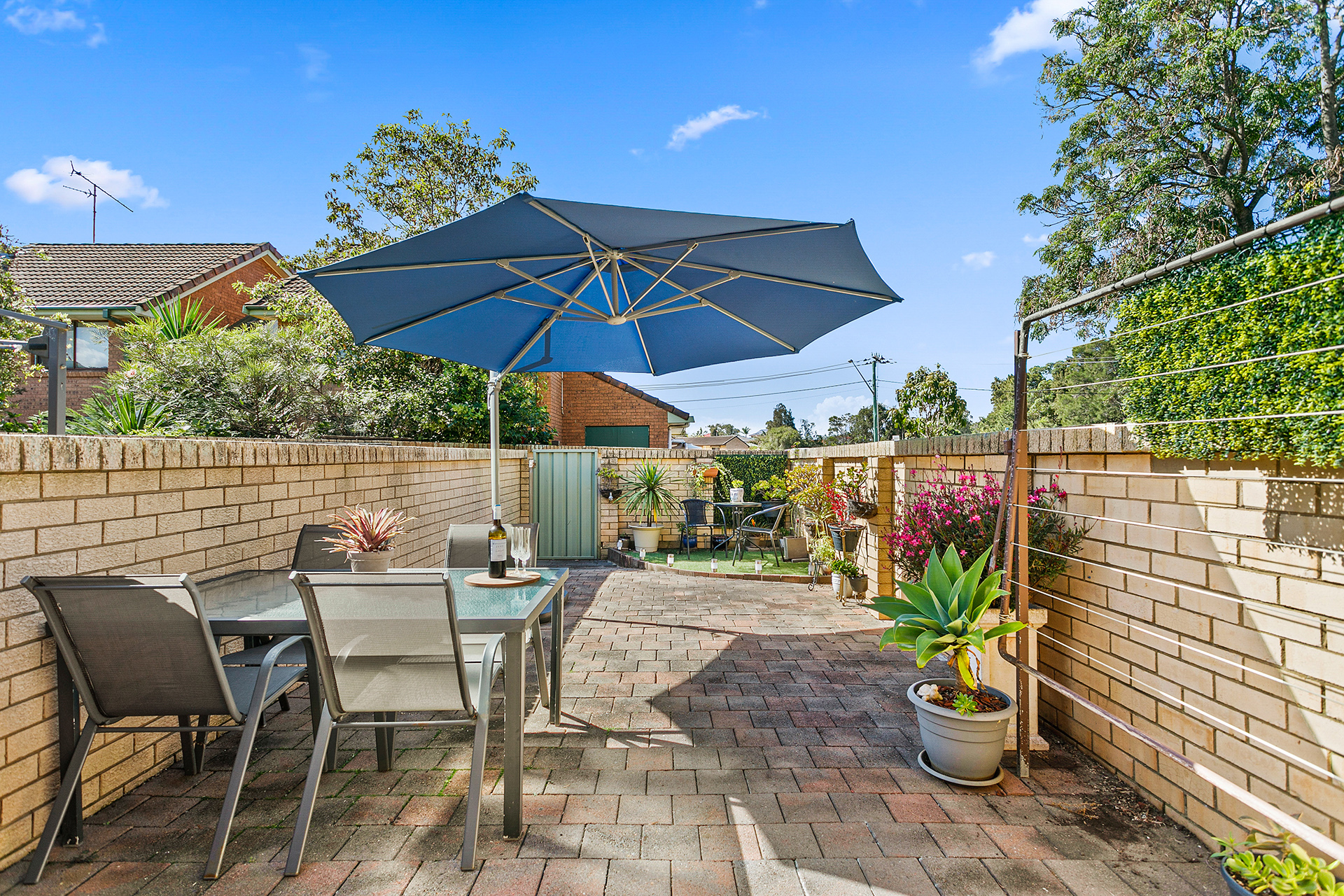 • 1 designated car space, large convenient private courtyard + a communal grassed area