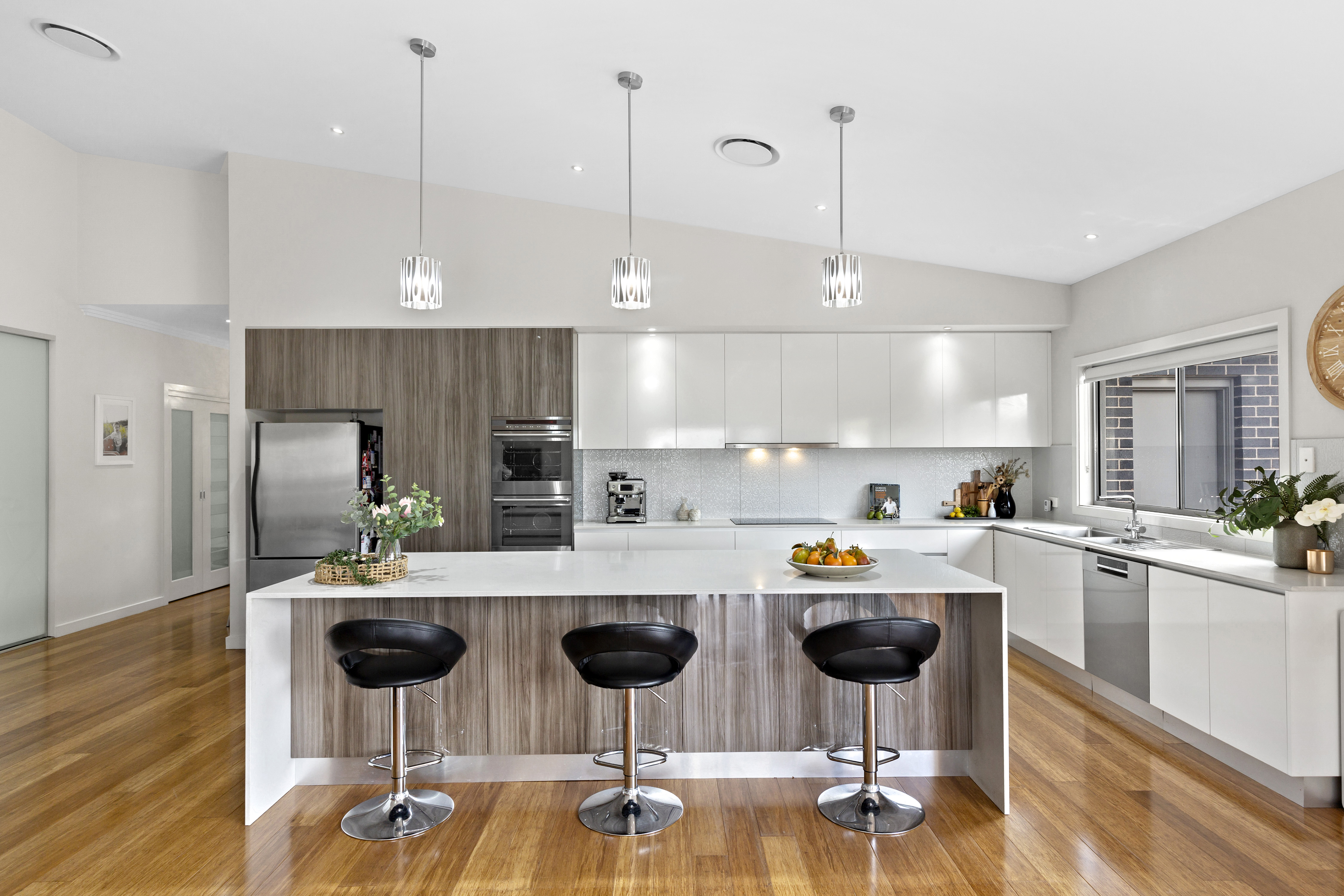 • Designer chef kitchen with stone island bench, s/steel appliances & large butler's pantry