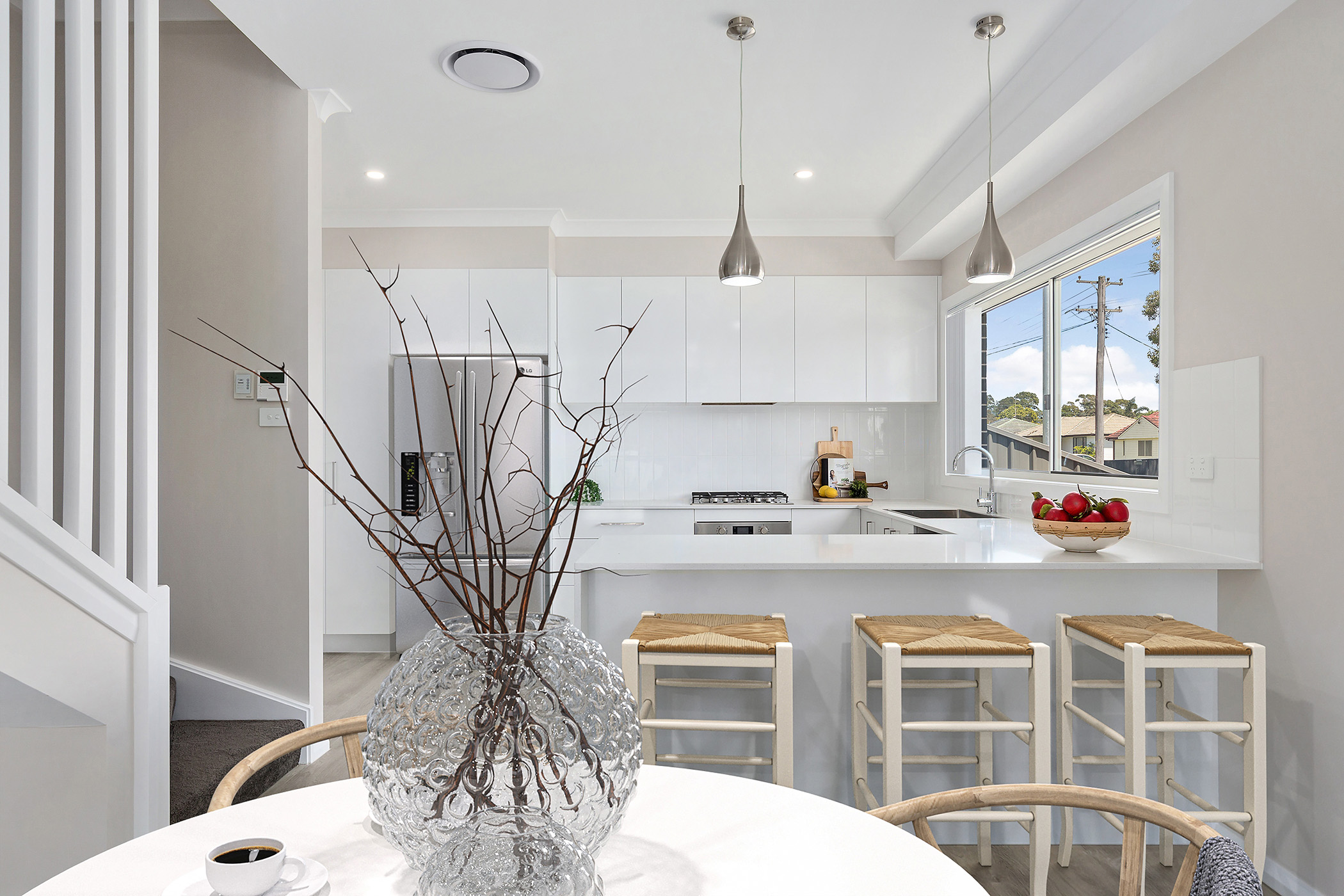 • Modern bathrooms + powder room, generous laundry, ducted air-conditioning & security alarm system