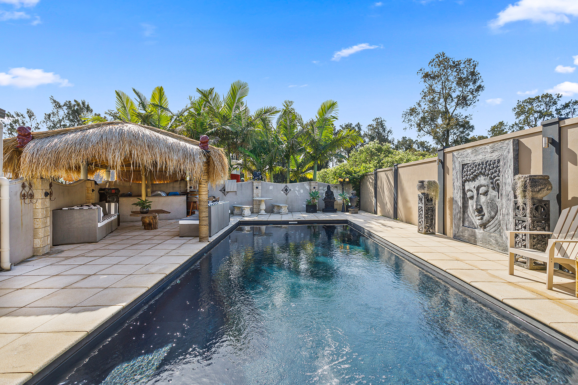 • Bali inspired in-ground heated saltwater pool with cabana