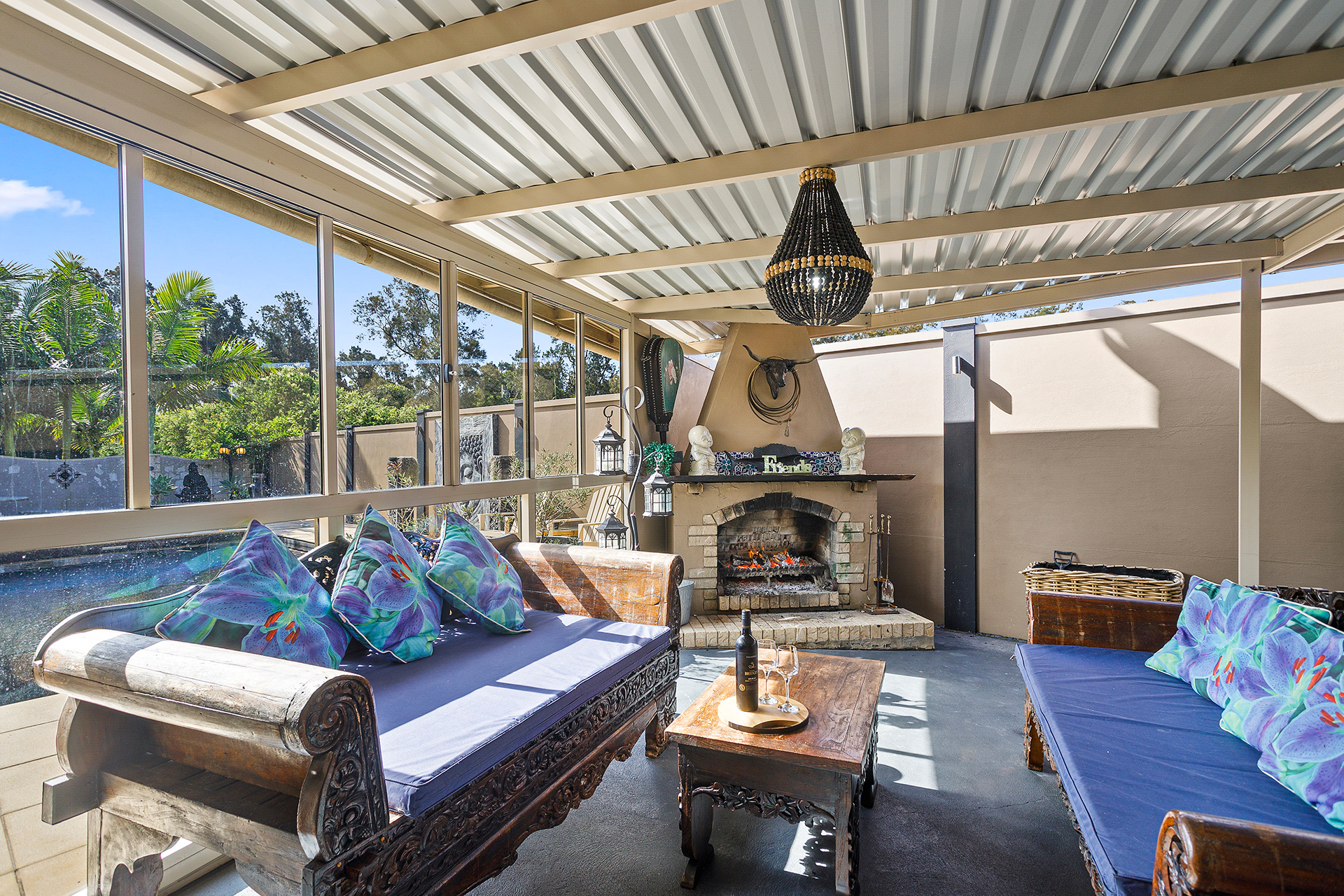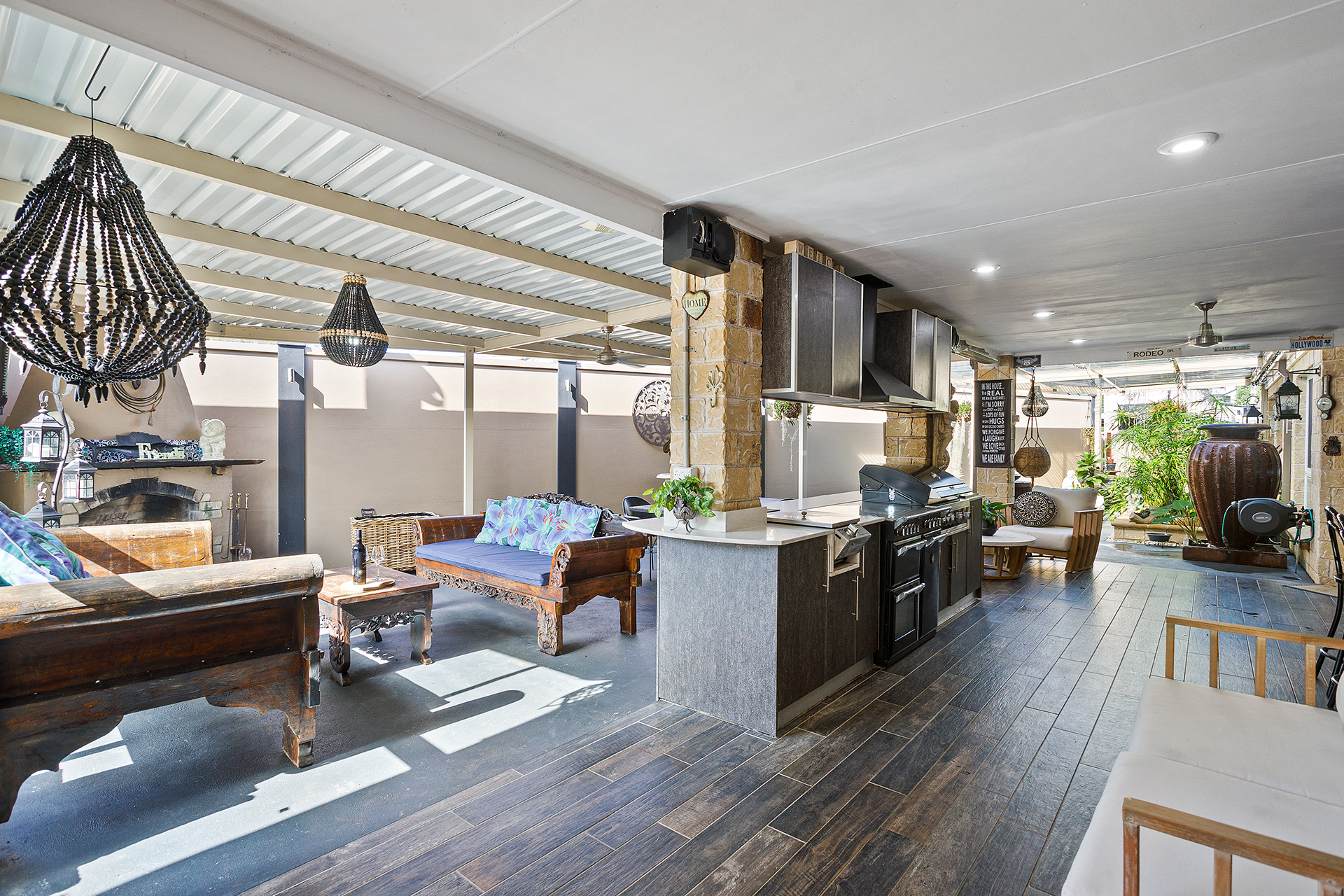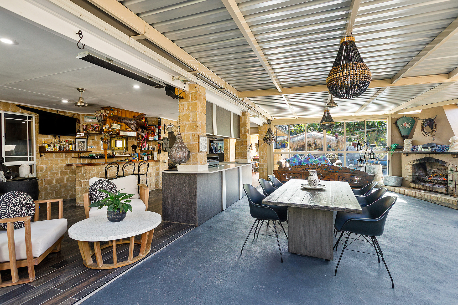 • Huge indoor/outdoor covered alfresco with built-in kitchen & bar with heater & fireplace