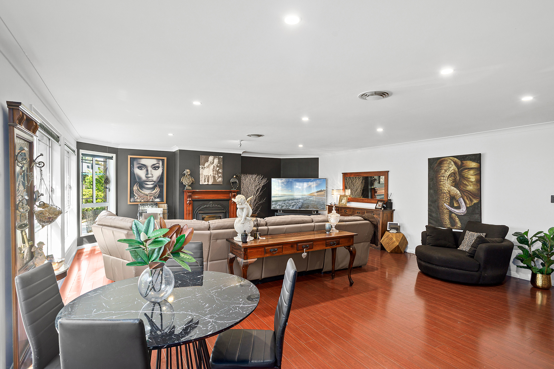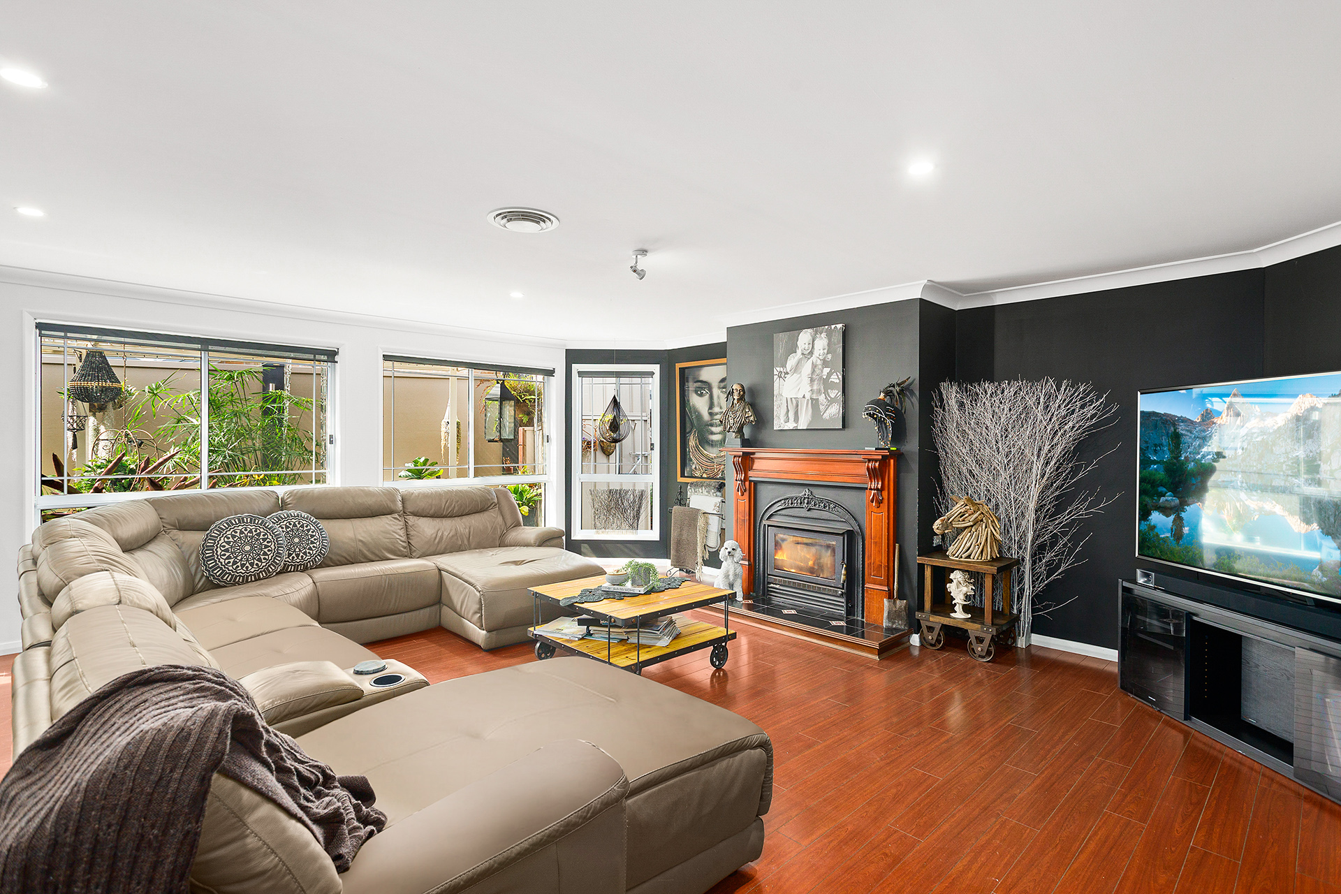 • Oversized open plan lounge/dining with traditional fireplace & second living area