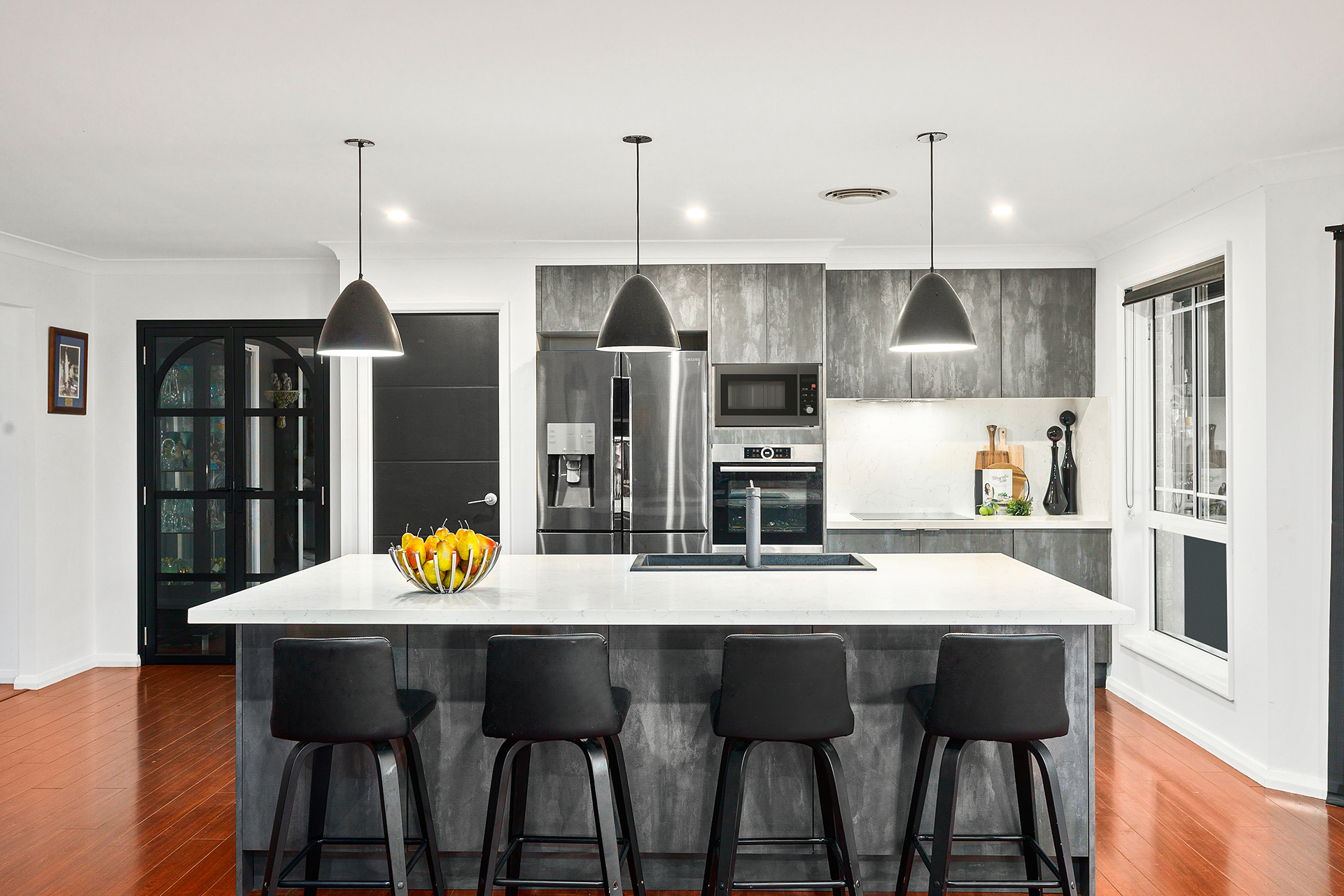 • Stunning modern chef's kitchen with stone benchtops, S/S appliances & large walk-in pantry