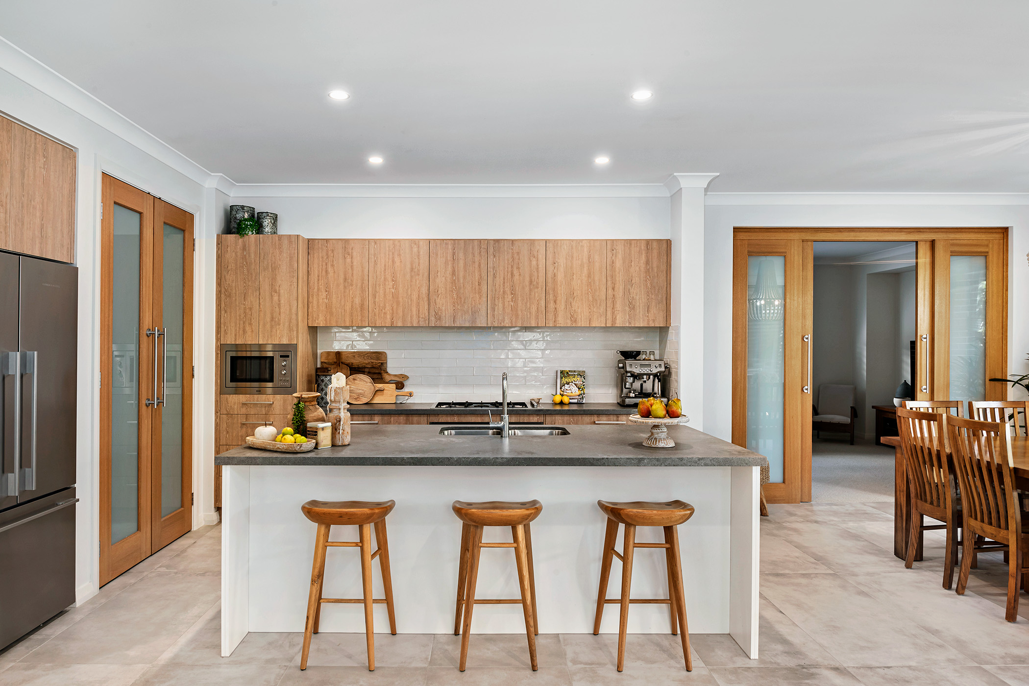 • Stylish modern kitchen with large island bench, breakfast bar & walk-in pantry