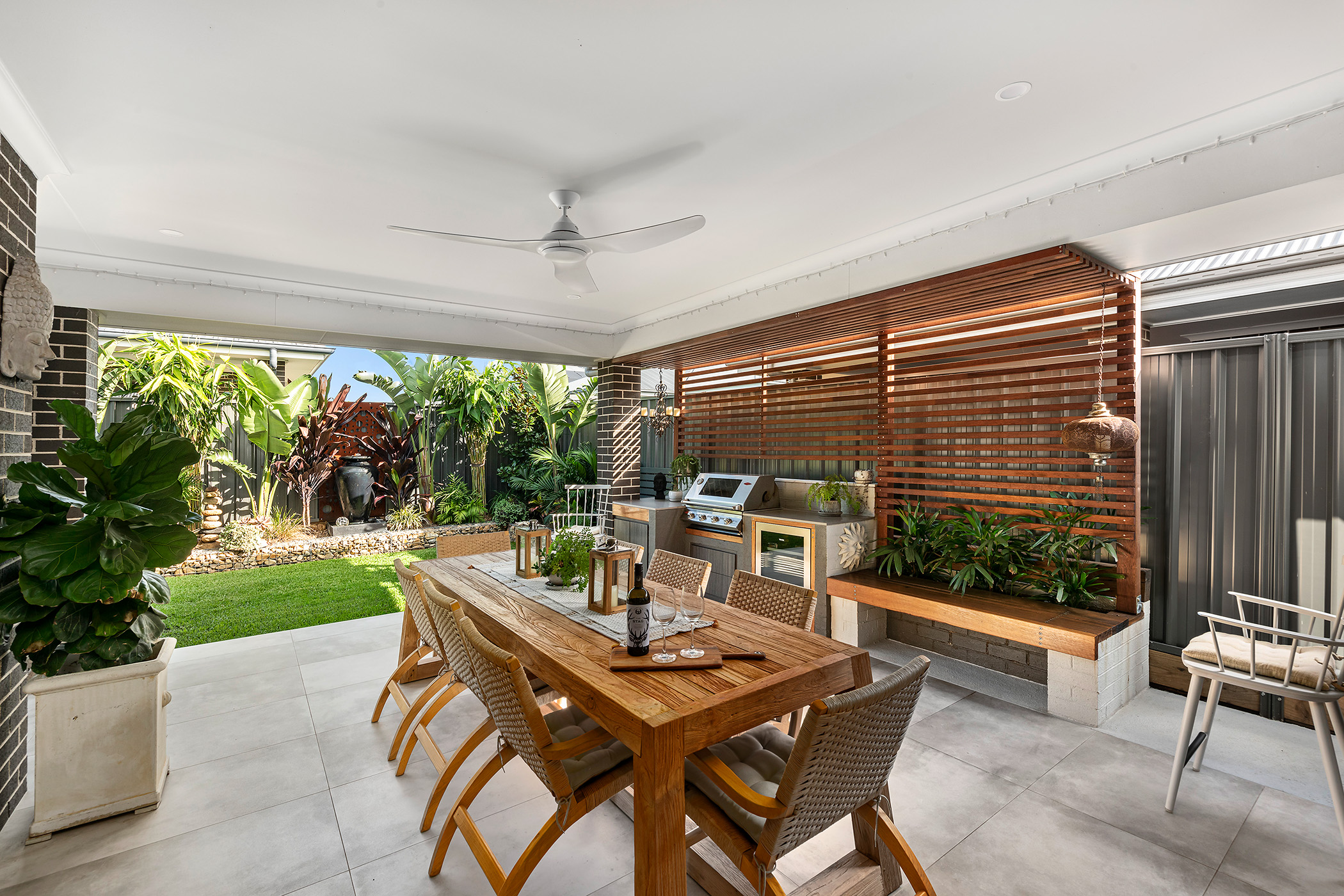 • Impressive alfresco entertainment area with built-in BBQ & bar fridge with a tropical outlook